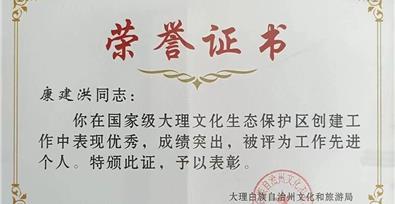 在國家級大理文化生態(tài)保護區(qū)創(chuàng)建10周年之際,為激勵全州非遺保護部門、非遺工作者、非遺繼承人不斷創(chuàng)新創(chuàng)造,為非遺事業(yè)做出更大的貢獻,近日,大理州文化和旅游局大張旗鼓的表彰了一批在全州非遺工作中成績突出的先進典型。大理州企業(yè)家協(xié)會理事單位——賓川縣康莊農(nóng)業(yè)生態(tài)觀光開發(fā)有限公司董事長康建洪榮獲“國家級大理文化生態(tài)保護區(qū)創(chuàng)建工作先進個人”稱號受到表彰??到ê橛?008年1月在賓川縣仁和村創(chuàng)建了賓川古建真空磚瓦廠,他憑著對磚瓦事業(yè)的一份鐘愛,在改進古建磚瓦燒制技術(shù)的同時,引進了劍川木雕工藝人才,將木雕傳統(tǒng)工藝與傳統(tǒng)