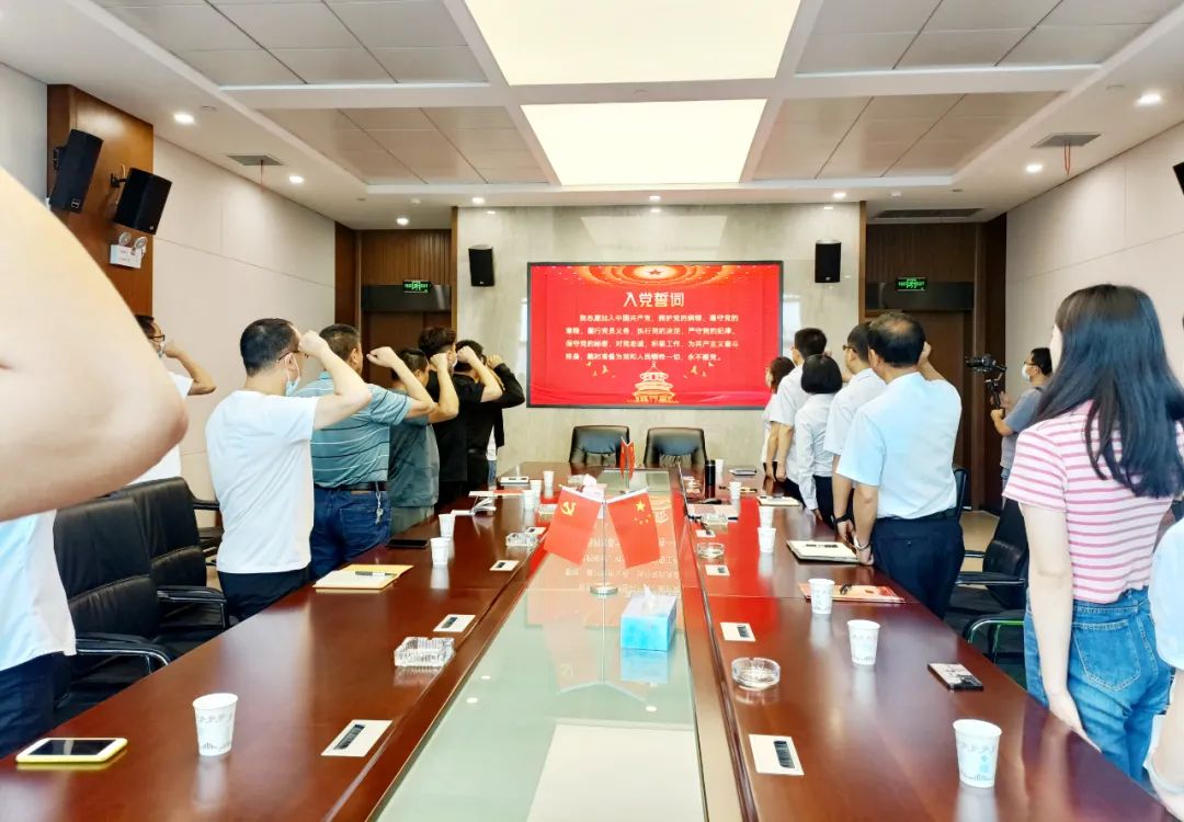 “我志愿加入中國共產(chǎn)黨,擁護黨的綱領……”與會全體黨員共同舉起右拳,面對黨旗莊嚴宣誓,鏗鏘有力的誓言表達了對黨的忠誠、熱愛和聽黨話、跟黨走的堅定決心。