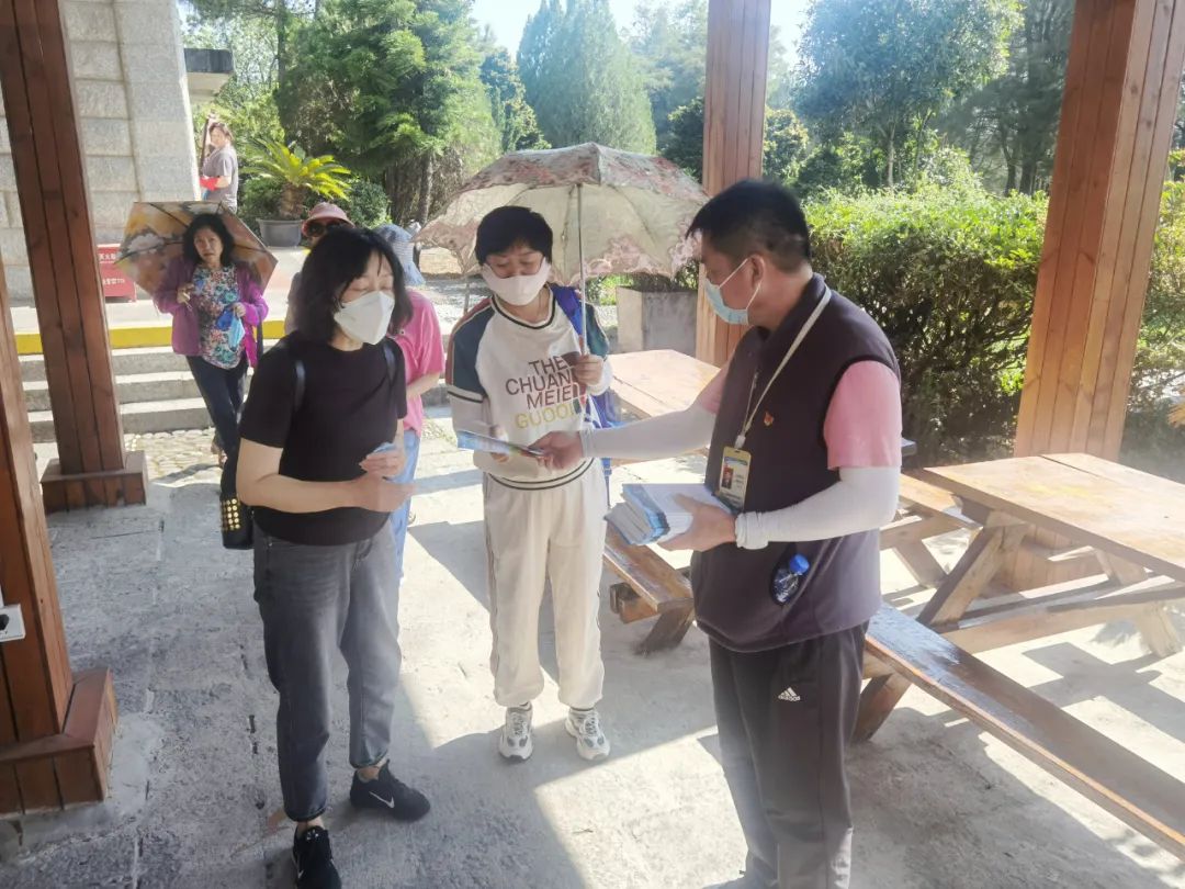 環(huán)境保護(hù),志愿先行。本次活動主要以黨員志愿者們向游客發(fā)放《保護(hù)蒼山愛我家園》《大理蒼山世界地質(zhì)公園科學(xué)導(dǎo)游圖》《2023年世界環(huán)境日主題》宣傳單的形式展開。宣傳過程中,志愿者們熱情洋溢、笑容可掬,通過發(fā)放宣傳單和講解服務(wù)相結(jié)合,引導(dǎo)游客自覺參與到蒼山保護(hù)中來,讓地質(zhì)遺跡和生態(tài)環(huán)境得到更好的保護(hù)。