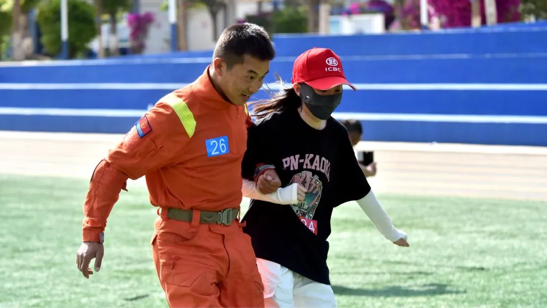 兩人三足環(huán)節(jié),各組消防救援人員和工商銀行青年員工精誠協(xié)作,詮釋了團(tuán)結(jié)就是力量。