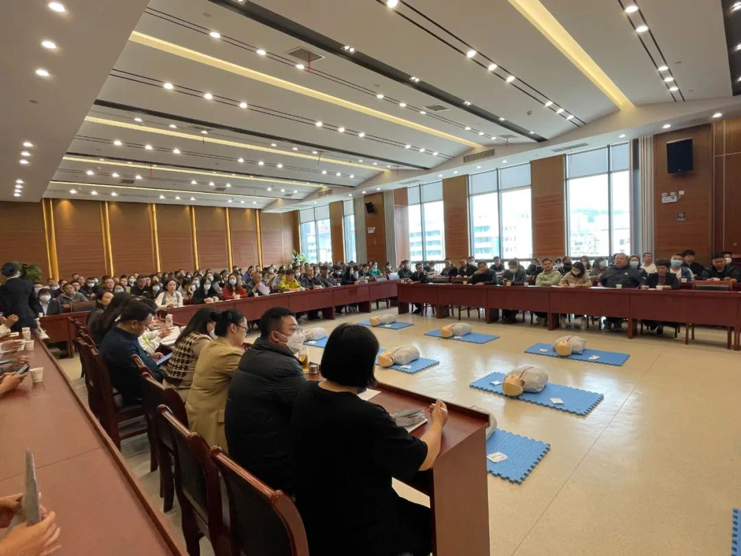 活動分三個階段進行,首先附屬醫(yī)院各相關科室醫(yī)師分別從ACS癥狀、體征及心臟病早期癥狀辨識、高血壓的防治、急性腦卒中識別與預防、創(chuàng)傷現場急救注意事項、心肺復蘇,海姆立克法等五個方面進行了培訓講解,并現場對各公司人員提出的問題進行了解答。