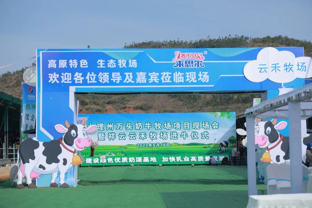 6月16日上午,大理州企業(yè)家協(xié)會(huì)理事單位——來(lái)思爾乳業(yè)第二座萬(wàn)頭牧場(chǎng),也是此次大理州“8+1”萬(wàn)頭牧場(chǎng)建設(shè)項(xiàng)目首個(gè)建成完工的牧場(chǎng)——來(lái)思爾云禾牧場(chǎng)進(jìn)牛儀式在大理州祥云縣禾甸鎮(zhèn)隆重舉行。中共大理州委副書記、州長(zhǎng)陳真永,州人大副主任王正林,州政協(xié)副主席施雙林,州政府黨組成員、一級(jí)巡視員吉向陽(yáng),各州級(jí)相關(guān)單位和各縣相關(guān)領(lǐng)導(dǎo)出席了儀式。來(lái)思爾乳業(yè)總經(jīng)理馬萬(wàn)平出席了儀式并作表態(tài)發(fā)言。