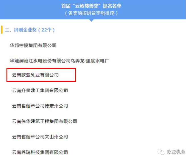 投身公益事業(yè) 爭當(dāng)慈善先鋒|歐亞乳業(yè)榮獲“云嶺慈善獎(jiǎng)”