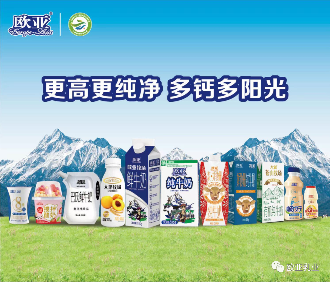 歐亞乳業(yè)成立于2003年,20年來,公司在各級各部門的支持下,在社會(huì)各界的幫助下,逐步發(fā)展成為我國南方地區(qū)規(guī)模較大、效益較好、品牌綜合影響力較強(qiáng)、產(chǎn)品深受消費(fèi)者喜愛的乳業(yè)龍頭企業(yè),先后獲得“農(nóng)業(yè)產(chǎn)業(yè)化國家重點(diǎn)龍頭企業(yè)”、云南省綠色食品“10強(qiáng)企業(yè)”、“云南省重點(diǎn)產(chǎn)業(yè)領(lǐng)軍企業(yè)”等榮譽(yù)。