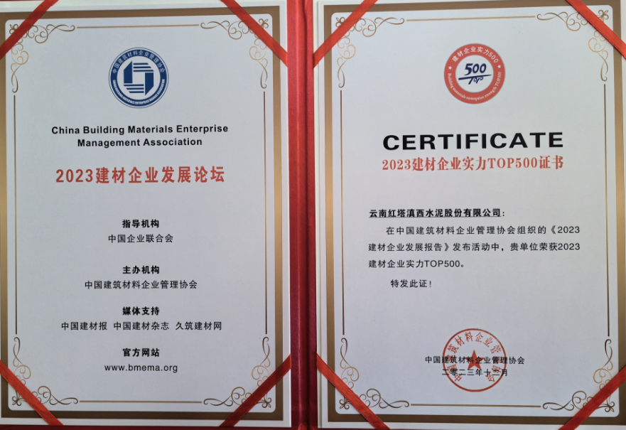 云南紅塔滇西水泥榮登2023中國建材企業(yè)500強(qiáng)