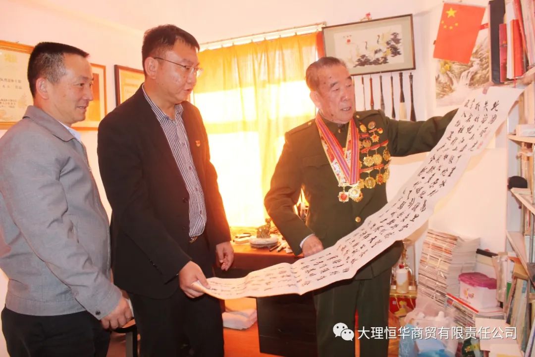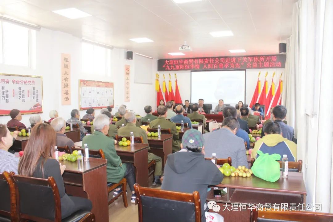 當(dāng)天下午,公司在大理市退役軍人事務(wù)局的關(guān)注引導(dǎo)下走進(jìn)下關(guān)軍休所,在一片祥和的氛圍里,慰問(wèn)40余人離退休老軍人、抗美援朝英雄、解放戰(zhàn)爭(zhēng)英雄、兩山戰(zhàn)役等其他戰(zhàn)役英雄及已故離休軍人遺屬,共敘軍民魚(yú)水情。雖然他們都已年邁,但非公企業(yè)在開(kāi)展社會(huì)公益活動(dòng)中,沒(méi)有忘記革命老前輩們?yōu)樯鐣?huì)為國(guó)家所做的貢獻(xiàn),點(diǎn)點(diǎn)滴滴皆令人敬仰,帶著致敬、尊重的情懷,共同度過(guò)了美好、歡樂(lè)和難忘的重陽(yáng)節(jié)。