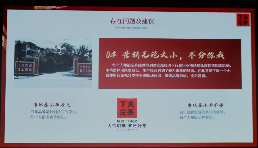 以產(chǎn)品與服務(wù)品質(zhì)為初心使命表達,以振興消費市場為根本,以消費提質(zhì)增效為著力點,共同為新一年的工作堅定信心、鉚足干勁,答好下關(guān)沱茶再勵百年的時代考卷。