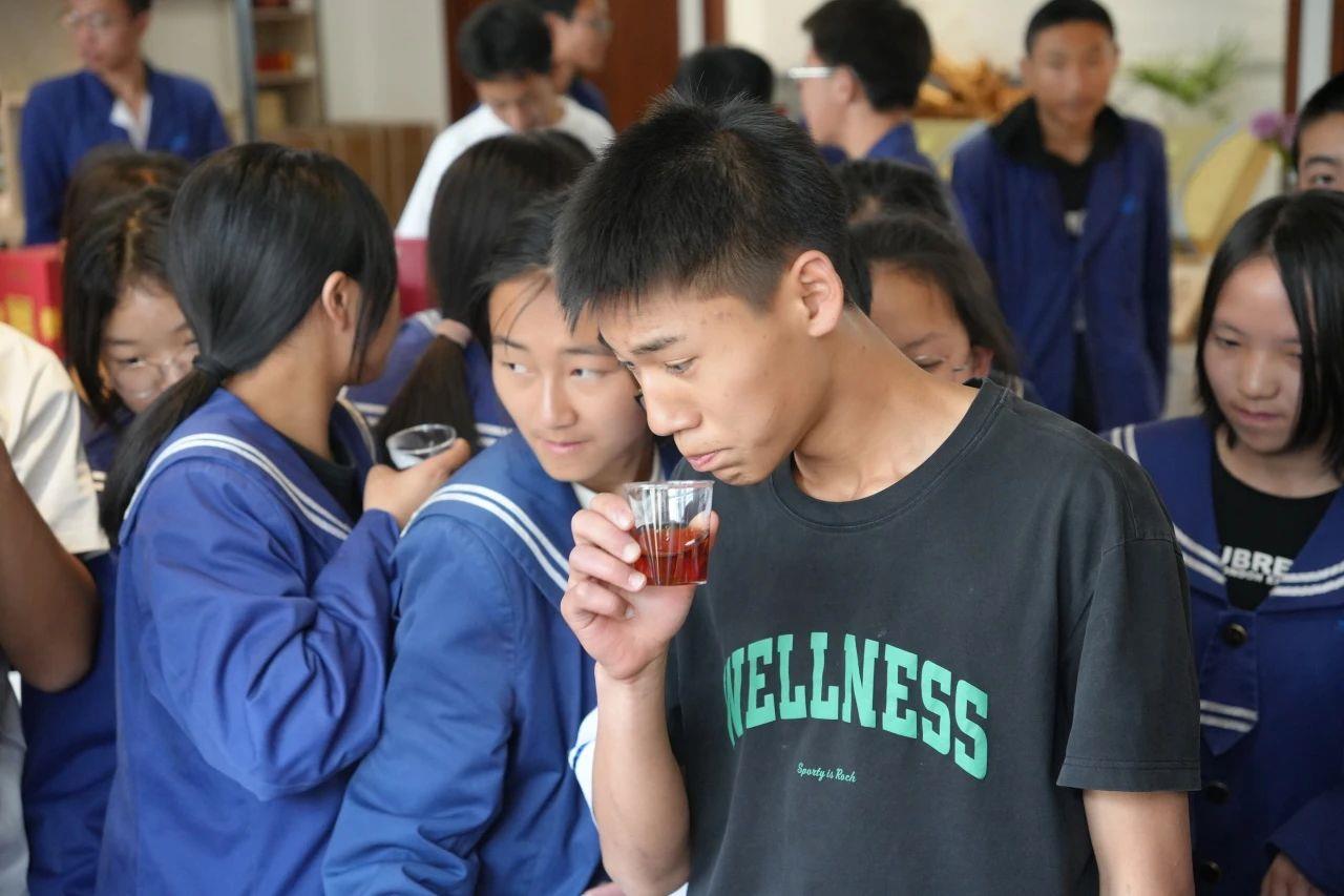 大家走到第四個(gè)展廳的時(shí)候,下關(guān)沱茶館的工作人員早已準(zhǔn)備好了下關(guān)沱茶的熟茶以及白茶,以供老師、家長(zhǎng)和同學(xué)們品飲。“一杯醇香的普洱茶,入口苦澀,而后又成甜的,像是在品位歷經(jīng)歲月的智慧與沉淀,這次寶貴的經(jīng)歷,讓我有機(jī)會(huì)用心地品位體驗(yàn)了下關(guān)的普洱茶,對(duì)它的喜愛(ài)已經(jīng)油然而生。”喝完下關(guān)沱茶,181班的華彩依同學(xué)表達(dá)了自己最真實(shí)的感受。