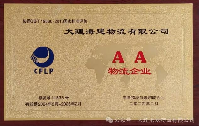 大會舉行了隆重的頒證授牌儀式,向獲得37批A級物流企業(yè)以及同期的擔(dān)保存貨管理與質(zhì)押監(jiān)管企業(yè)、星級冷鏈物流企業(yè)、網(wǎng)絡(luò)貨運(yùn)平臺企業(yè)、供應(yīng)鏈服務(wù)企業(yè)以及“中國物流與供應(yīng)鏈金融智庫專家”、“中物聯(lián)金融委特約研究員”進(jìn)行授牌。全國第37批A級物流企業(yè)共414家,本次云南省新增A級物流企業(yè)6家,其中大理州有2家,大理州企業(yè)家協(xié)會常務(wù)副會長單位——大理滄龍物流有限公司下屬的全資子公司大理海建物流有限公司被認(rèn)定為國家AA級物流企業(yè),這是大理海建物流6年發(fā)展的歷史見證和獲得的最高榮譽(yù)。