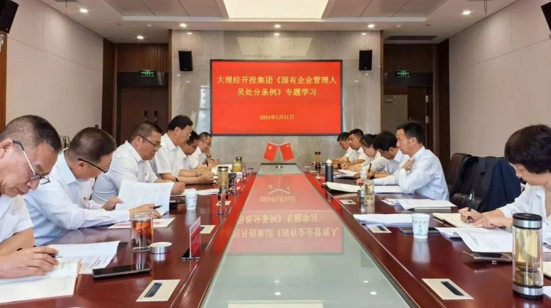 為營造風(fēng)清氣正的政治生態(tài),強化約束國有企業(yè)管理人員的從業(yè)行為,5月31日,大理州企業(yè)家協(xié)會會員單位——大理經(jīng)開投集團黨委召開專題會議,組織學(xué)習(xí)《國有企業(yè)管理人員處分條例》。