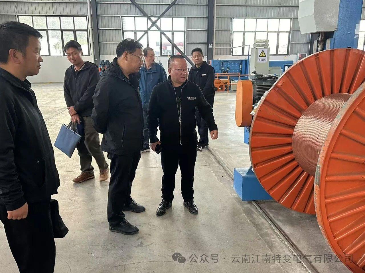 11月26日,大理經(jīng)濟技術(shù)開發(fā)區(qū)管委會主任汪國武、副主任張福弟率領(lǐng)經(jīng)開區(qū)工信、稅務(wù)、市場監(jiān)管等相關(guān)部門領(lǐng)導到大理州企業(yè)家協(xié)會副會長單位——云南江南特變電氣有限公司旗下企業(yè)云南百超電纜有限公司調(diào)研。