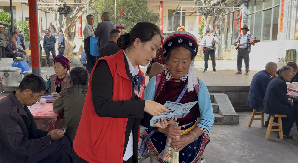 大理州銀行業(yè)協(xié)會及大理市農(nóng)商行的工作人員在現(xiàn)場設(shè)立服務(wù)咨詢臺,為老年人提供一對一金融指導(dǎo),耐心解答每一個疑問;同時向老人們發(fā)放金融宣傳手冊,將防范非法集資、識別電信詐騙等實用內(nèi)容轉(zhuǎn)化為可看、可記的圖文指南。“聽了講解才知道騙子花樣這么多,前些日子有人在村里說免費贈送洗滌劑,但要我們報身份證號碼用來登記,我們立馬拒絕”剛聽完講解的一位奶奶拿著宣傳手冊感慨道,與大理市農(nóng)商行的工作人員交流著自己的“反詐心得”。