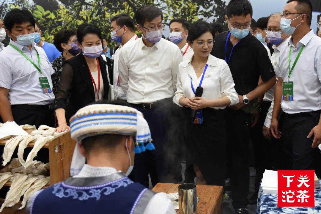 ▲觀展賓客觀摩、體驗(yàn)下關(guān)沱茶制作技藝