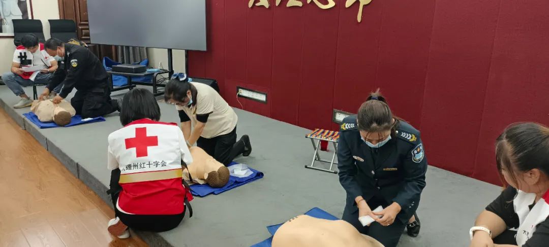 培訓(xùn)主要分為救護(hù)理論知識講解和自救互救能力現(xiàn)場實(shí)操培訓(xùn)兩大部分。州紅十字會專家老師以簡單易懂的語言分別從現(xiàn)場心肺復(fù)蘇,創(chuàng)傷急救基本技術(shù)、止血、包扎、骨折固定,傷員搬運(yùn),中暑、觸電、溺水、燒燙傷、氣道異物梗阻等意外事故急救知識和技能等方面展開授課并在現(xiàn)場通過模擬人手把手模擬演練。