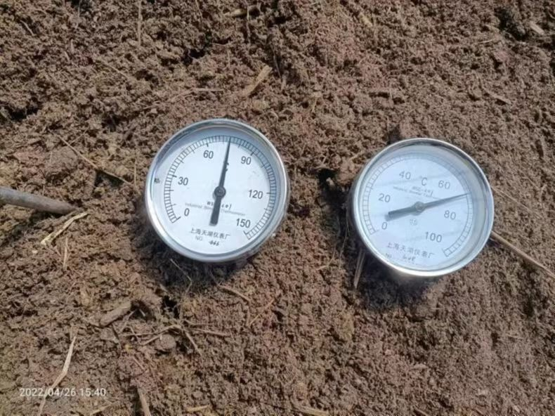 發(fā)酵過(guò)程中物料溫度達(dá)到50℃左右,每2-3天翻堆一次,當(dāng)溫度達(dá)到65℃-70℃時(shí)要及時(shí)翻堆降溫,當(dāng)溫度下降至接近環(huán)境溫度時(shí)發(fā)酵結(jié)束,整個(gè)發(fā)酵過(guò)程經(jīng)過(guò)升溫、高溫、降溫、腐熟四個(gè)階段。