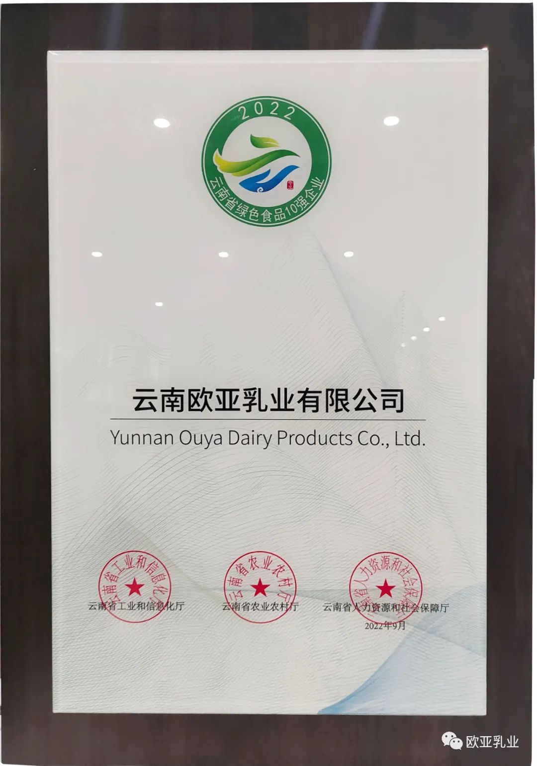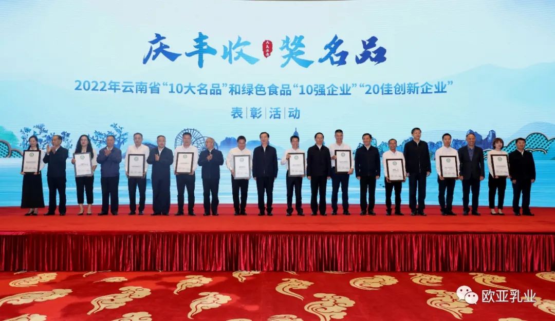 歐亞乳業(yè)再登云南省綠色食品“10強(qiáng)企業(yè)”榮譽(yù)殿堂