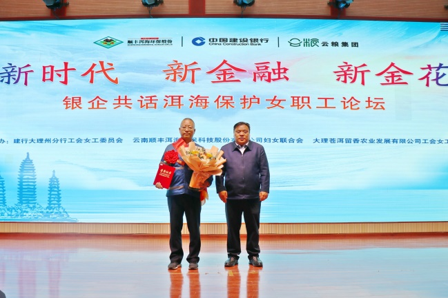 頒獎(jiǎng)結(jié)束后,建行大理州分行董婭、云南順豐洱海環(huán)??萍脊煞萦邢薰驹S思、大理蒼洱留香農(nóng)業(yè)發(fā)展有限公司的蘇偉芬圍繞洱海保護(hù)進(jìn)行宣講。